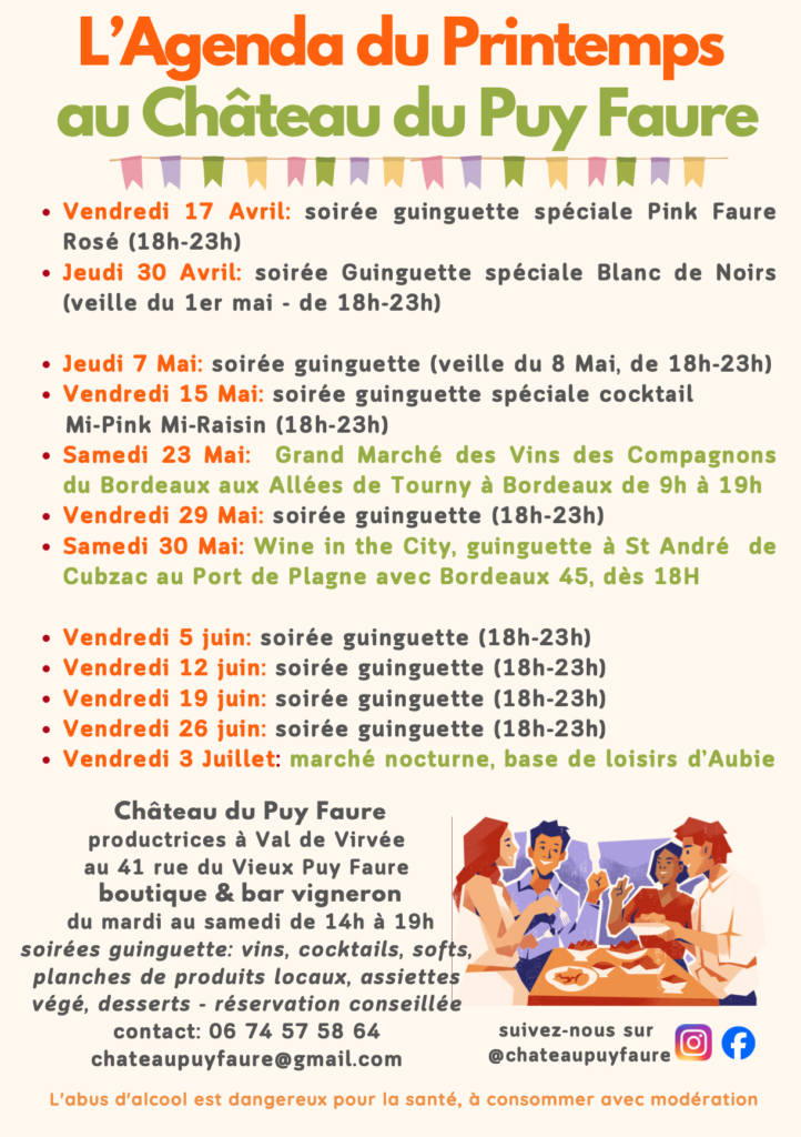 - Vendredi 17 Avril: soirée guinguette spéciale Pink Faure Rosé (18h-23h)